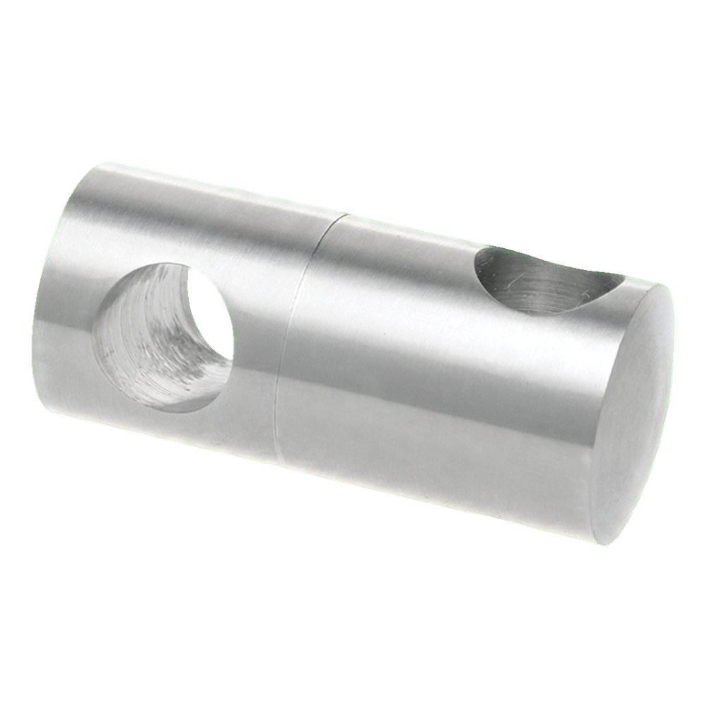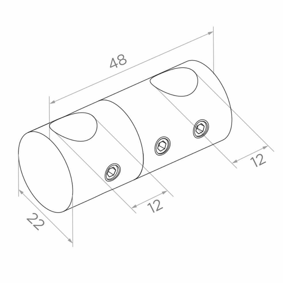 Univerzální dvojitý průchozí držák určený pro montáž dvou trubek nebo tyčí o průměru 12 mm mezi sloupky zábradlí. Díky kompaktní, válcové konstrukci s třemi dociskovými šrouby prvek zajišťuje spolehlivé a trvalé upevnění výplní — bez nutnosti svařování. Ideální řešení pro realizaci moderních zábradlí s vodorovnou výplní.