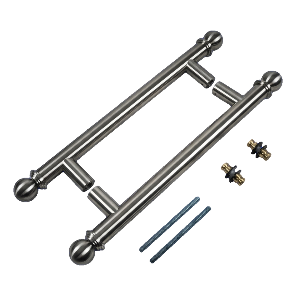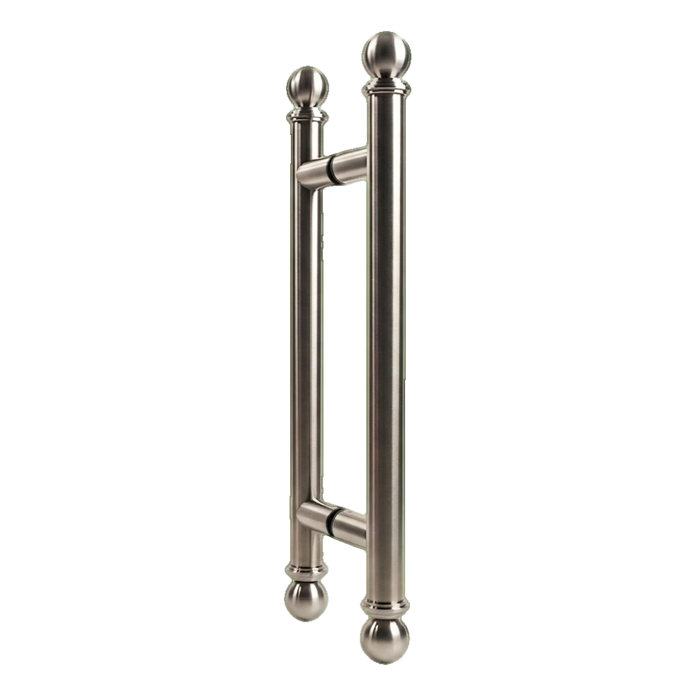 Dvoustranná klika PSG je elegantní dveřní úchyt s klasickým designem, vyrobená kompletně z vysoce kvalitní nerezové oceli AISI 304 s matnou povrchovou úpravou. Dekorativní zakončení ve formě koulí jí dodává stylový, reprezentativní charakter — ideální pro komerční objekty, kanceláře, hotely a exkluzivní bytové interiéry.