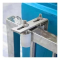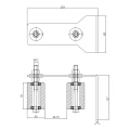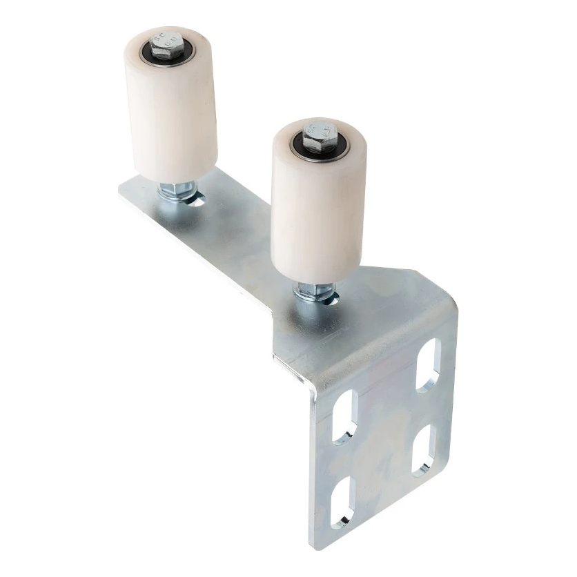 Vedení se montuje na horní části sloupku oplocení nebo zdi, kde obepíná křídlo brány dvěma kladkami. Nastavitelný rozestup kladek (světlost 49–79 mm) umožňuje přizpůsobení různým uzavřeným profilům používaným u posuvných bran. Šrouby M12 umožňují spolehlivé dotažení kladek a podélné montážní otvory v nástěnném držáku usnadňují přesné vyrovnání.