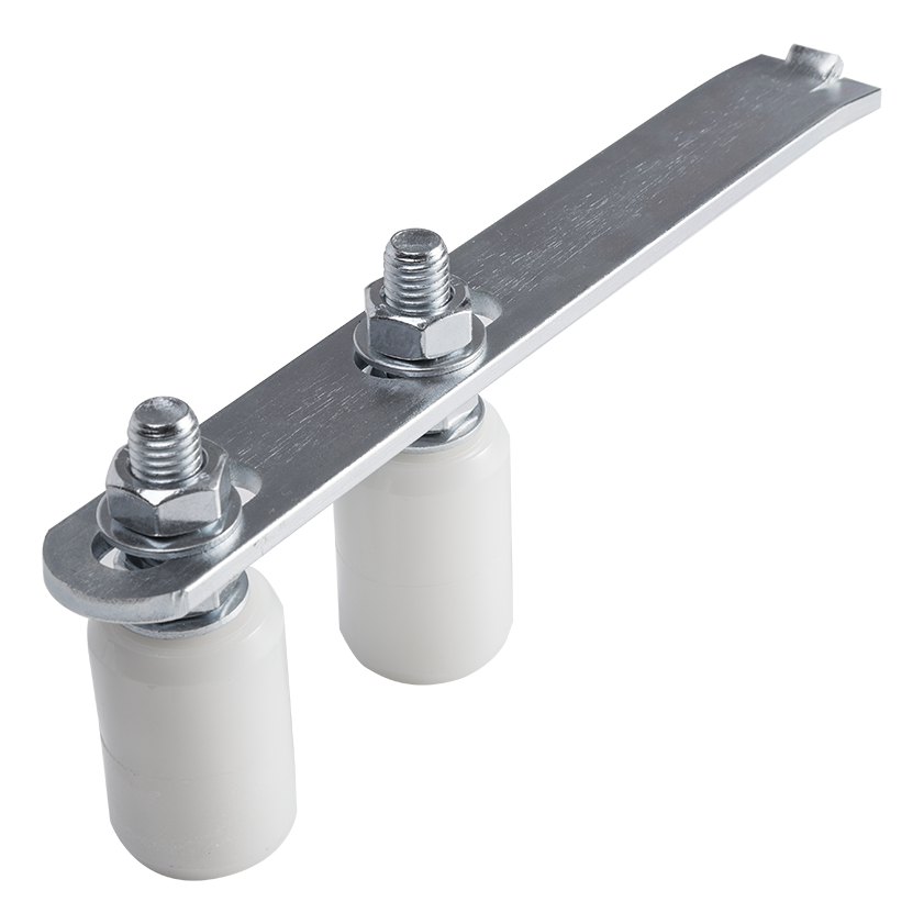 Regulace rozteče kladek v rozsahu od 15 do 65 mm umožňuje přizpůsobit vedení konkrétní tloušťce horního profilu brány. Pozinkovaný povrch ocelového plochého profilu zajišťuje odolnost proti korozi a dlouhodobý provoz venku, a kladky z umělé hmoty zaručují tichý chod a nepoškrábou povrch brány.