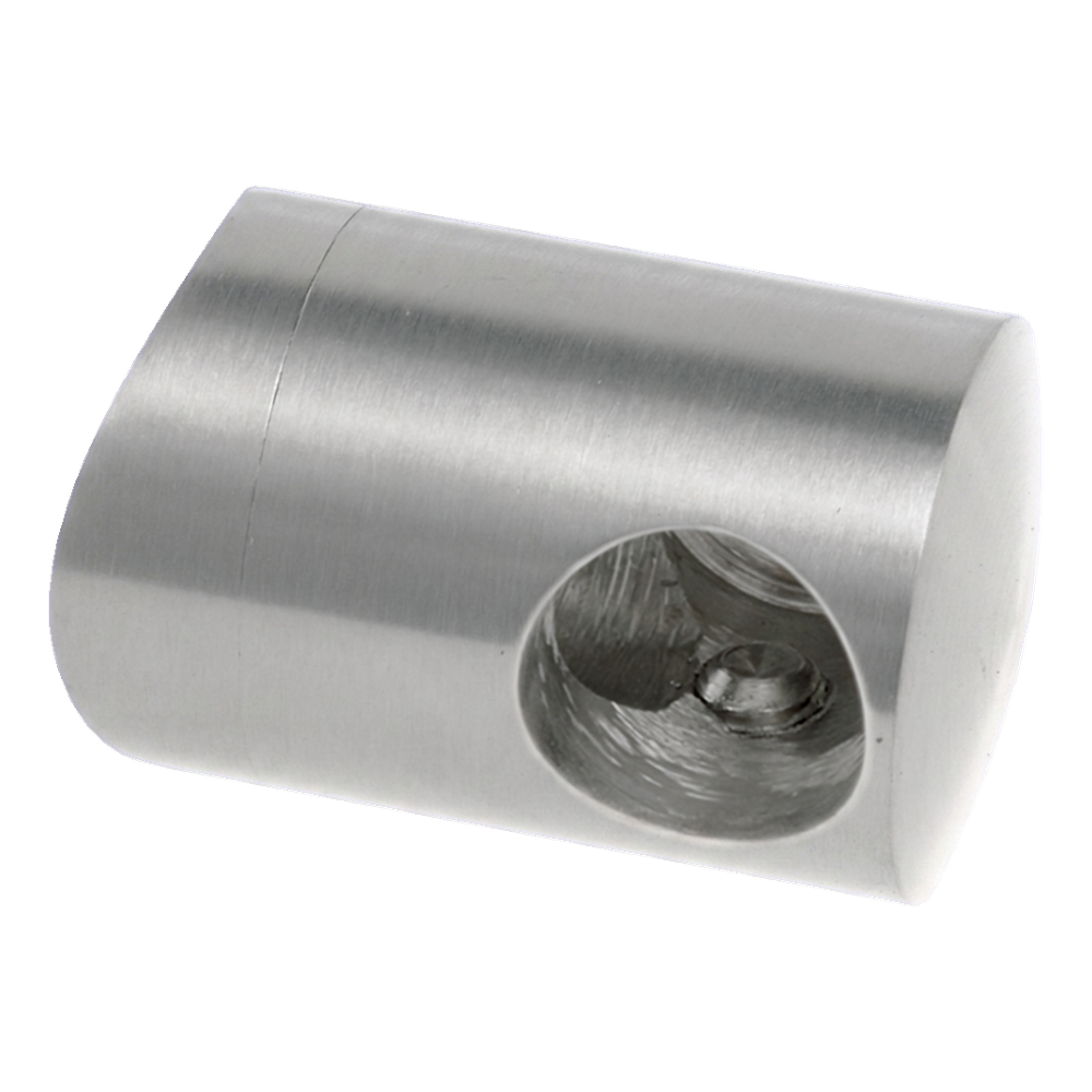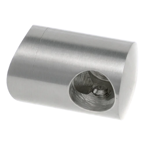 Koncový (startovní) držák levý určený pro montáž tyče o průměru fi 16 mm na nosnou trubku fi 42,4 mm. Slouží jako počáteční nebo koncový prvek tyčové výplně v zábradlích z nerezové oceli. Vyroben z materiálu AISI 304 v povrchové úpravě satén — zajišťuje vysokou odolnost proti korozi a estetický, matný vzhled sladěný se zbývajícími prvky zábradlového systému 42,4 mm.
