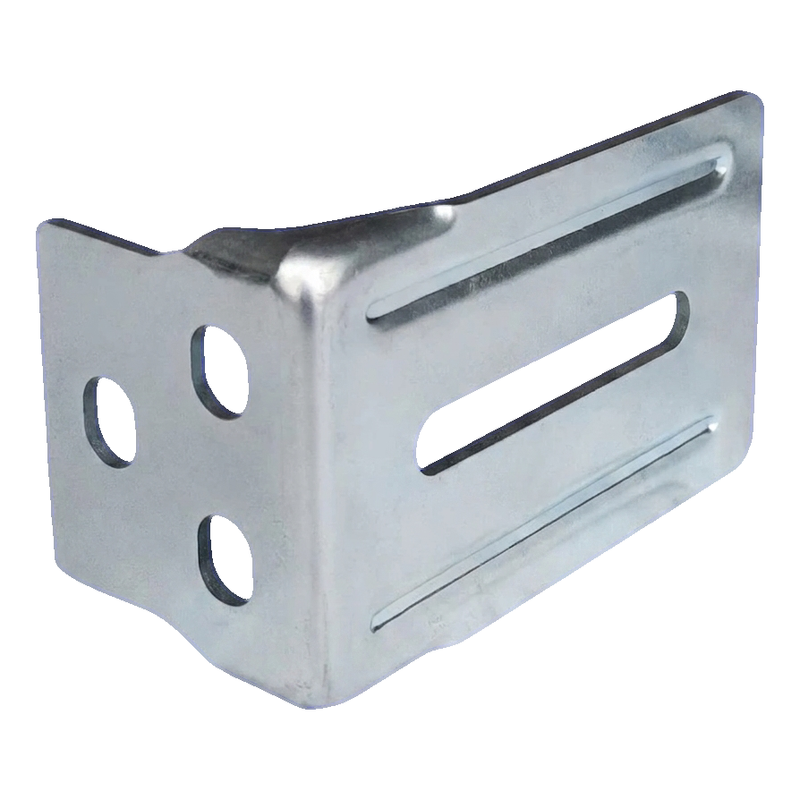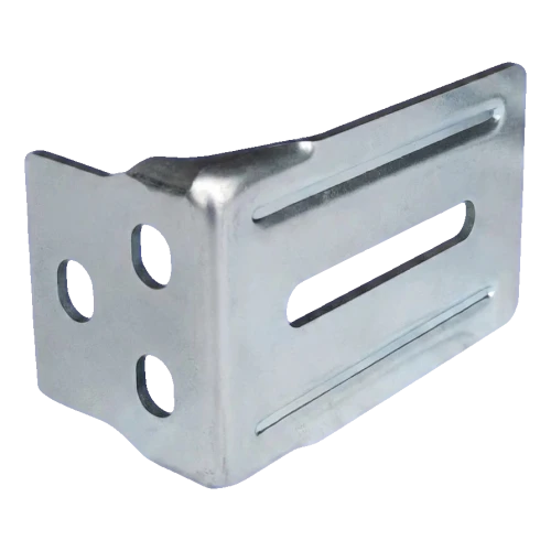 Konzole má tvar písmene L a je vybavena podlouhlými otvory jak na svislé, tak na vodorovné příruběž, což umožňuje přesnou regulaci polohy držáku najezdu při montáži. Kulaté otvory na svislé stěně slouží k dodatečnému upevnění. Taková konstrukce umožňuje montážním firmám rychlou montáž s možností korekce nastavení bez nutnosti vrtání nových otvorů.