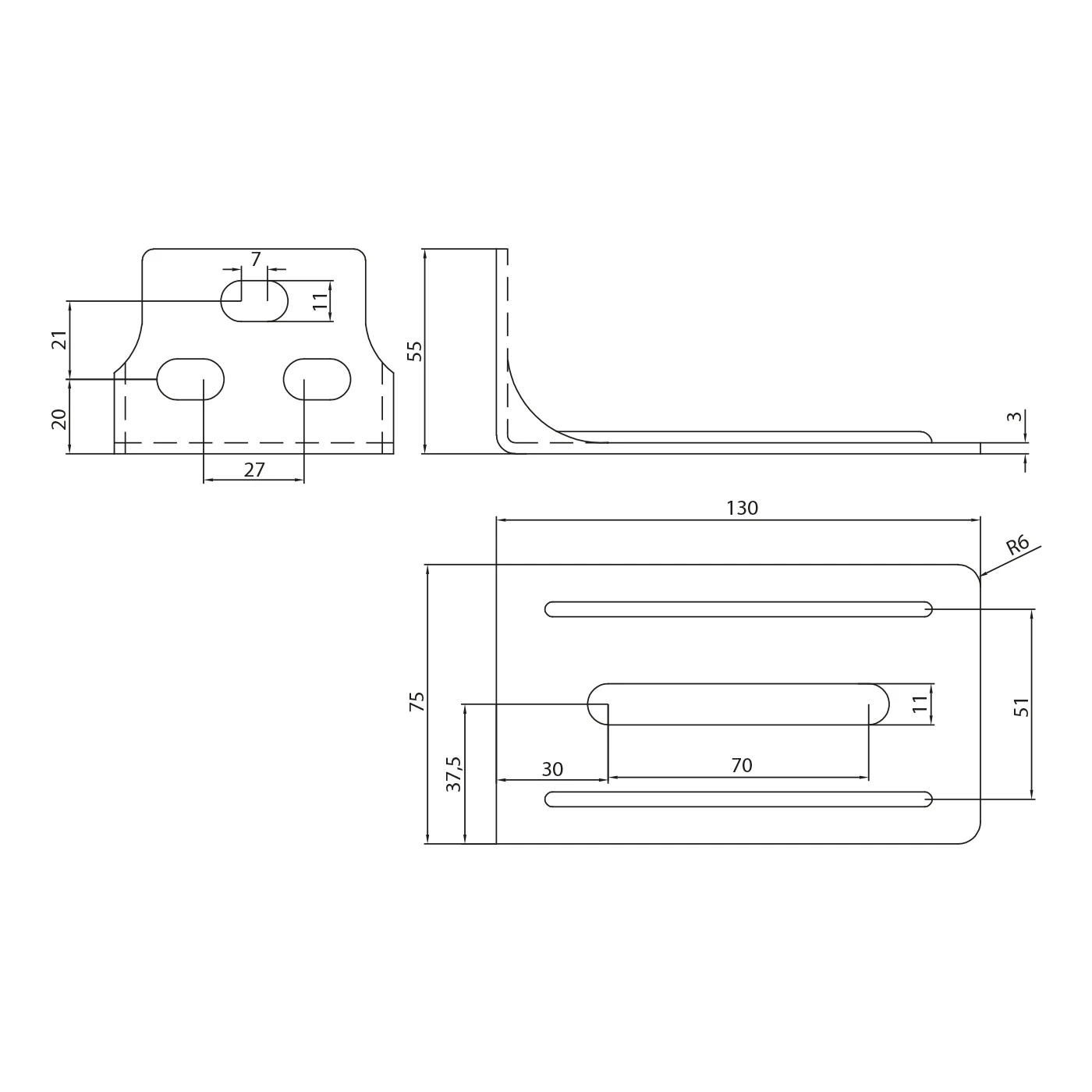 - Poloměr zaoblení rohů: R6