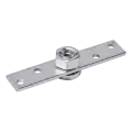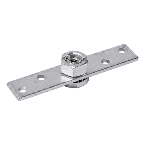 Ocelová montážní deska PSG představuje klíčový prvek systému vedení posuvných bran — slouží jako otočné upevnění sady pojezdových rolek. Díky centrální ose otáčení s maticí se rolky mohou volně přizpůsobovat směru kolejnice, což se promítá do plynulého a tichého chodu brány. Kompaktní rozměry (100 × 20 mm) a čtyři montážní otvory zajišťují stabilní a spolehlivé upevnění k nosné konstrukci.