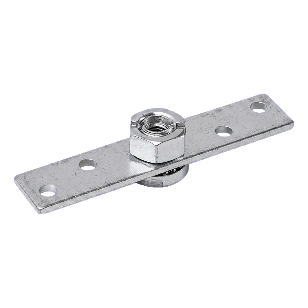 Montážní plotna PSG 38 je ocelový prvek sloužící k otočnému uchycení sestavy kladek v systémech posuvných bran. Díky vestavěnému otočnému kloubu s maticí zajišťuje plynulý chod jízdního vozíku, umožňuje kompenzaci nerovností kolejnice a eliminuje nadměrné namáhání kladek.