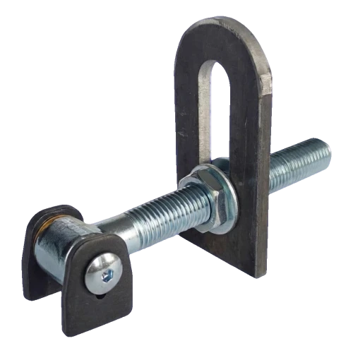 Nastavitelný závěs M20 s mosazným pouzdrem značky PSG je odolný závěsový prvek brány nebo branky, navržený pro dlouhodobé a bezproblémové používání. Díky úhlu otevření 180° lze křídlo brány zcela otevřít do pozice rovnoběžné se sloupkem — bez rizika zablokování závěsu. Mosazná pouzdra mezi uchem a čepem zajišťují plynulý chod a výrazně prodlužují životnost spojení, eliminují tření kov-kov.