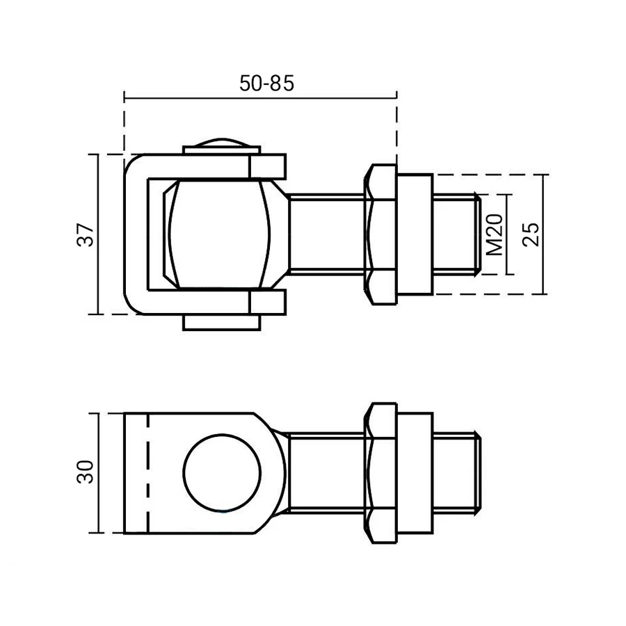 Rozsah nastavení od 50 do 85 mm dává instalatérovi velkou flexibilitu v přizpůsobení odstupu mezi křídlem a sloupkem. Díky tomu pant kompenzuje drobné nepřesnosti svařování a nerovnosti terénu bez nutnosti opětovné demontáže. Po nastavení optimální pozice šroub M20 zajišťuje pevné a stabilní udržení křídla, garantující plynulé otvírání a zavírání na dlouhé roky provozu.