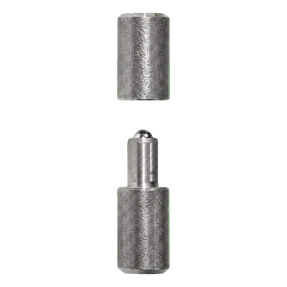 Závěs se skládá ze dvou prvků: horního pouzdra (samičího) a čepu s koulí (samčího), které po sestavení tvoří kompaktní, spolehlivý bod otáčení. Kulovitá koncovka čepu minimalizuje tření a usnadňuje zavěšení křídla — stačí nasunout pouzdro na čep. Toto řešení obzvlášť oceňují montážní týmy, protože výrazně zkracuje čas instalace bran a branek.