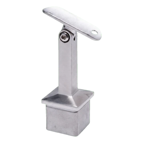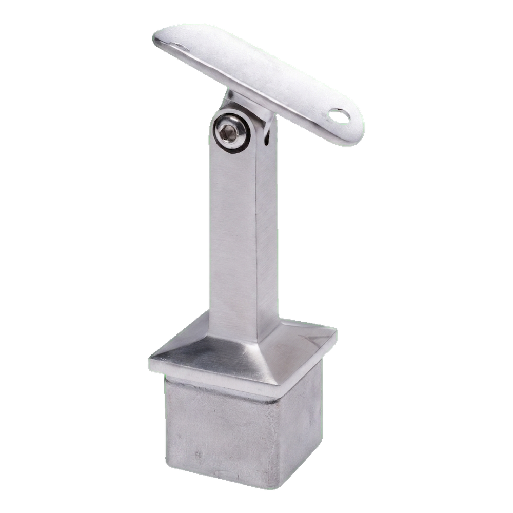 Kloubová podpora zábradlí určená pro spojení čtvercového sloupku 40×40 mm s madlem o průměru 42,4 mm v konstrukcích nerezových zábradlí. Díky nastavitelnému kloubu umožňuje prvek volné nastavení úhlu sklonu madla, což je obzvláště užitečné při montáži schodišťových zábradlí — eliminuje nutnost řezání a přizpůsobování úhlu na stavbě.