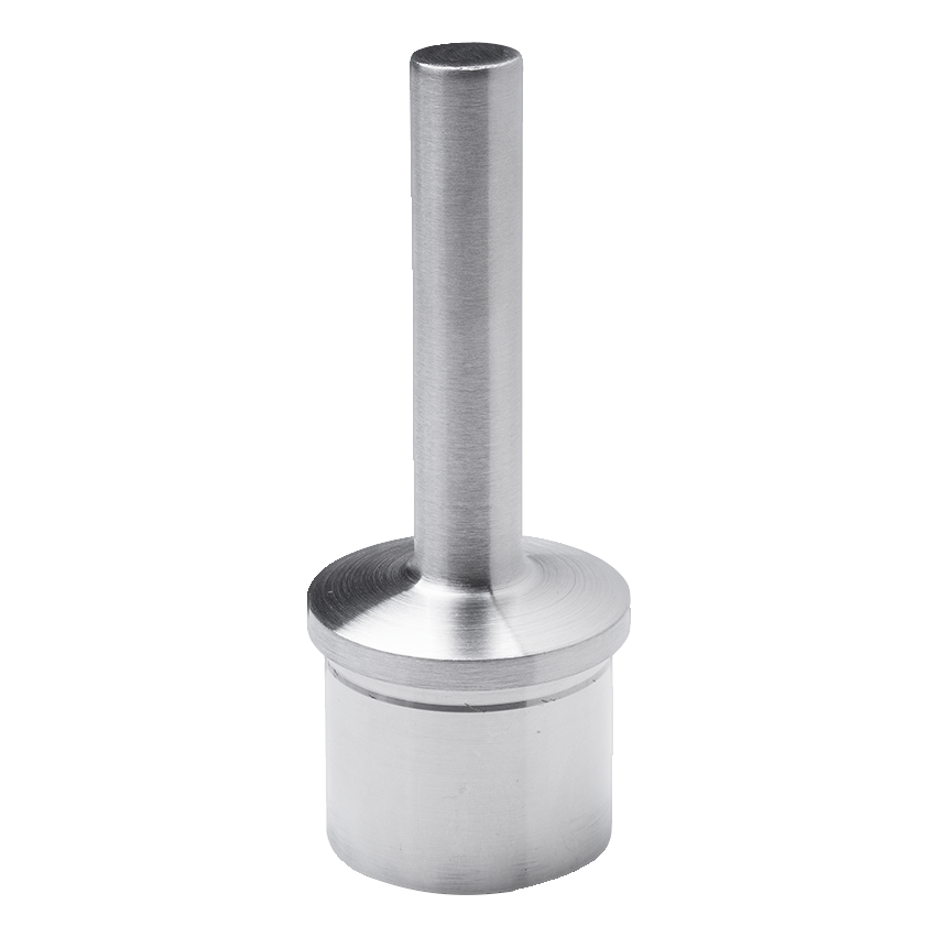 Čep o průměru ø 14 mm a celkové výšce 80 mm umožňuje spolehlivé osazení madla, a kompaktní základna přizpůsobená trubce 42,4 × 2 mm usnadňuje centrování a montáž. Díky povrchové úpravě satén se výrobek harmonicky sladí s ostatními prvky systémů nerezových zábradlí.