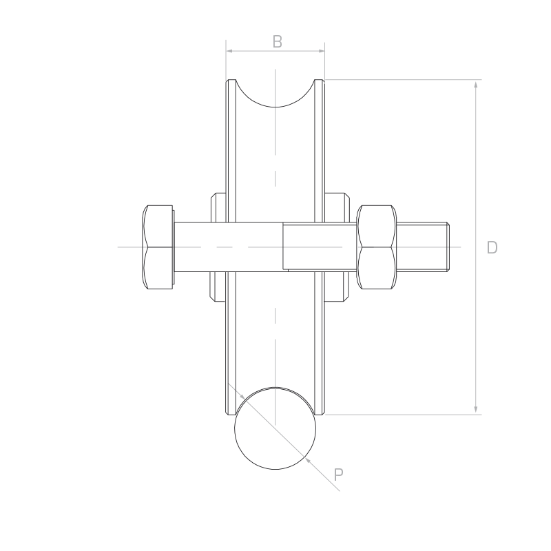 Na technickém výkresu označení D odpovídá vnějšímu průměru kolečka, B – šířce drážky a P – průměru kulaté kolejnice, s kterou kolečko spolupracuje. Při výběru kolečka se je třeba ujistit, že průměr pojezdové kolejnice odpovídá profilu drážky.