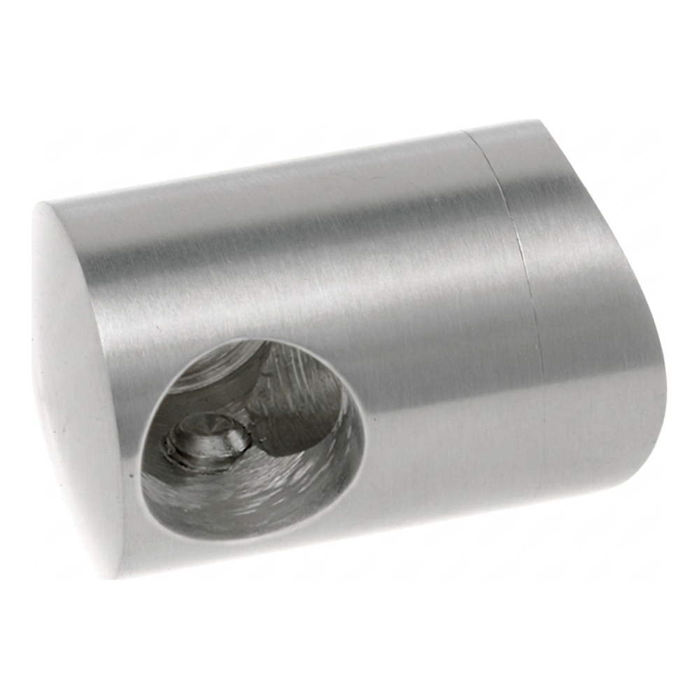 Pravá koncová držák pro tyč fi 12 mm, určený pro montáž na trubku o průměru 42,4 mm. Prvek vyrobený z nerezové oceli AISI 304 v leštěném povrchu — ideální pro estetická nerezová zábradlí v rezidenčním a komerčním stavebnictví.