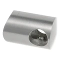 Průchodný držák pro tyč ø 12 mm, určený k montáži na trubku o průměru 42,4 mm. Spojovací prvek propojující výplň nerezového zábradlí se sloupkem — tyč prochází držákem насквозь, což zajišťuje pevné a estetické spojení celé konstrukce.