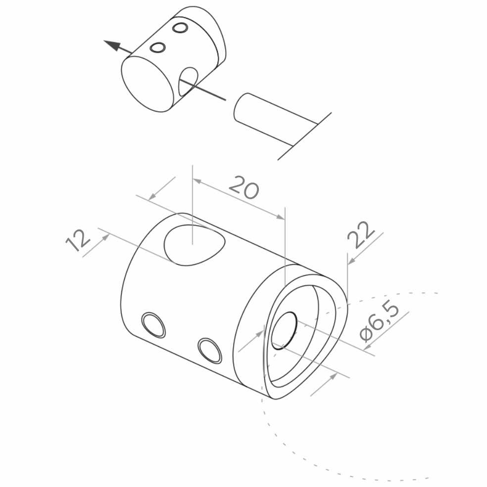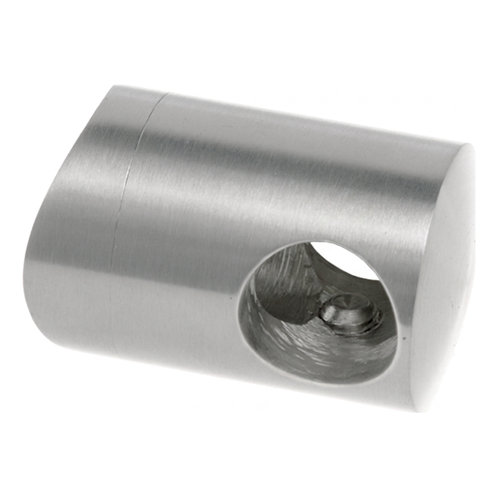 Kompaktní, cylindrická forma s přesně frézovaným průchodným otvorem usnadňuje montáž a zajišťuje estetický, minimalistický vzhled. Vnitřní přítlačný šroub umožňuje spolehlivé upevnění tyče bez nutnosti svařování.