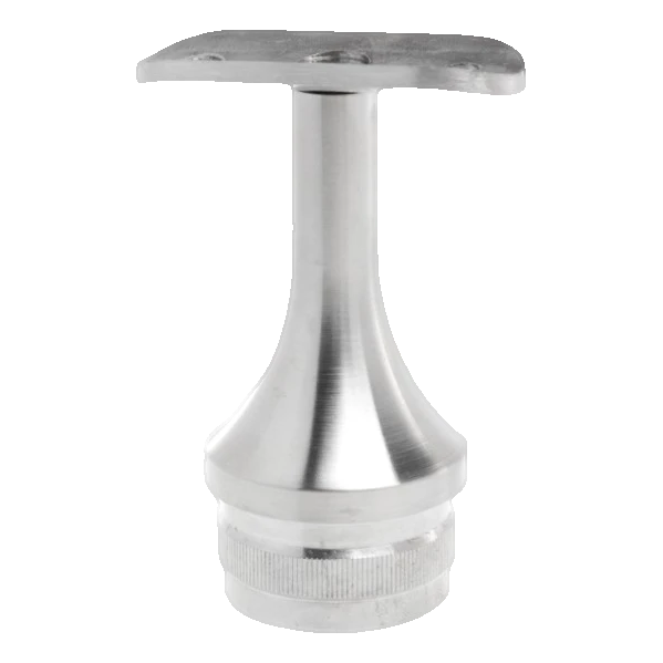 Podpora je vyrobena z nerezové oceli AISI 304 s saténovou povrchovou úpravou, odolnou proti korozi a snadnou k udržování čistoty. Elegantní, obtékavý tvar třmene dodává zábradlí moderní charakter. Produkt se ideálně hodí pro systémy zábradlí vnitřních i venkovních — na schodištích, balkonech, terasách a ve veřejných objektech.