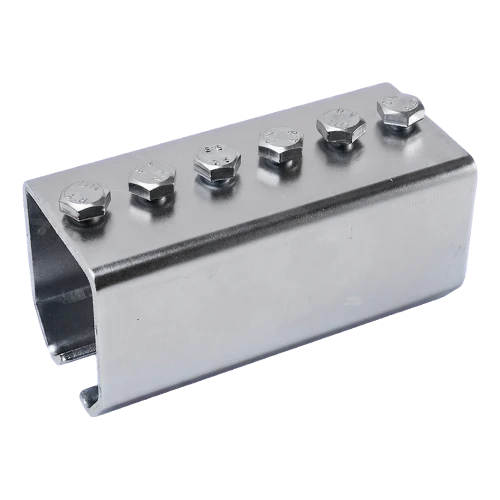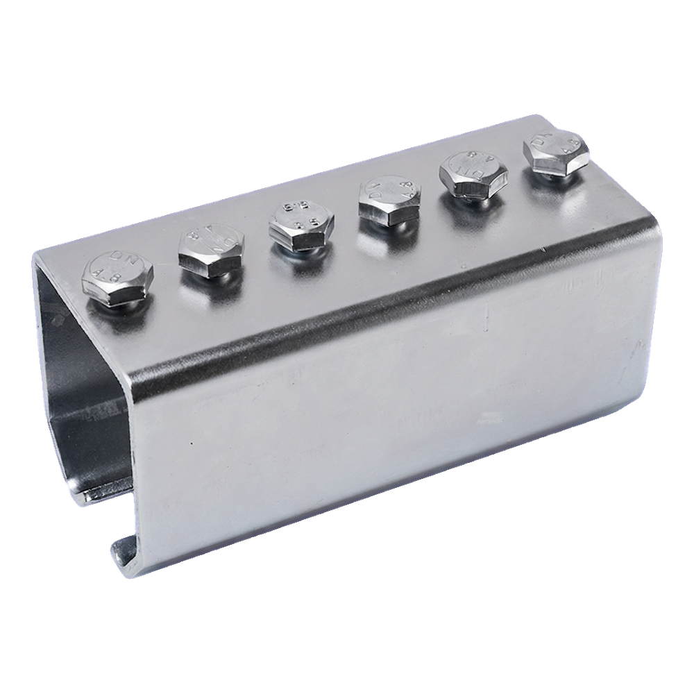 Pozinkovaná spojka pro jízdní dráhu značky PSG určená pro spojování úseků U profilu (dráhy) o rozměrech 59×62 mm, používaného v podvěšených branách. Solidní konstrukce z pozinkované oceli a kompletní sada 6 přítlačných šroubů v balení umožňuje rychlou, spolehlivou montáž bez nutnosti dodatečného kompletování příslušenství. Spojka nasazovaná na styk dvou drah zajišťuje tuhé a trvalé spojení, eliminuje vůle a vibrace během provozu brány.