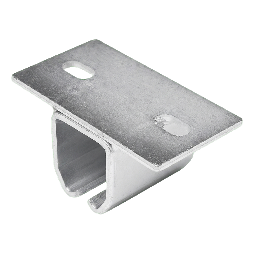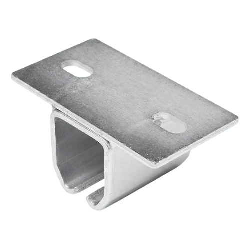 Pozinkovaný závěs na vodící lištu posuvné brány určený pro U profil (vodící lištu) o rozměrech 50×46 mm. Prvek používaný u zavěšených bran — umožňuje spolehlivé zavěšení vodící lišty na strop nebo nosný trám. Pevná konstrukce z pozinkované oceli zajišťuje trvanlivost a odolnost proti korozi, díky čemuž se závěs osvědčuje jak v interiérových, tak i venkovních instalacích.