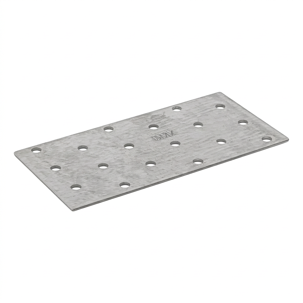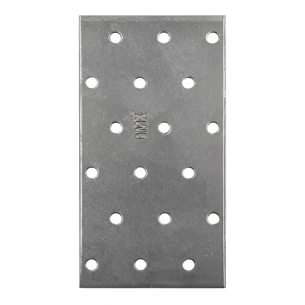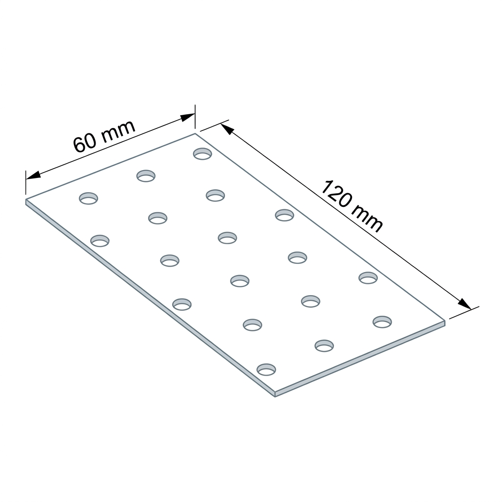 Perforovaná destička 60×120 mm je odolný tesařský spojovací prvek určený pro profesionální spoje dřevěných konstrukcí. Díky 18 otvorům o průměru 5 mm rovnoměrně rozmístěným po ploše plechu umožňuje realizaci jednoduchých i složitých tesařských uzlů — všude tam, kde boční plochy spojovaných prvků leží v jedné rovině.