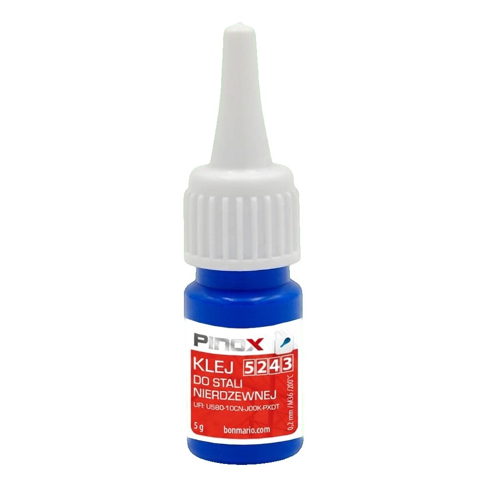 Pinox 5243 je profesionální anaerobní lepidlo typu hřídel-náboj o obsahu 5 g, určené pro trvalé zajištění závitových a lisovaných spojů prvků z nerezové oceli. Tuhnout začíná po kontaktu s kovem při současné nepřítomnosti kyslíku, což zaručuje spolehlivé spojení v těžko dostupných místech — např. při montáži zábradlí, úchytů a konstrukčních prvků z nerezové oceli.