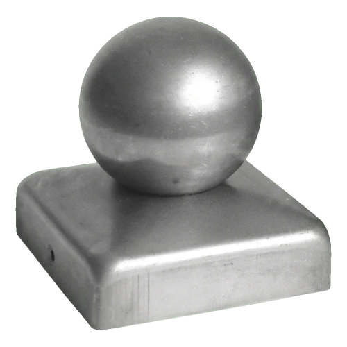 Plotový kryt ocelový 120×120 mm s ozdobnou koulí Ø 80 mm – surový
