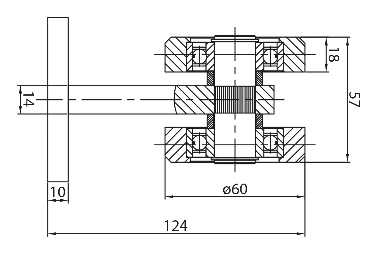 Nosná kolečka jsou uložena na ložiscích, což zajišťuje dlouhodobý a bezúdržbový provoz s minimálním opotřebením. Plastové vodící kolečko plní stabilizační funkci — udržuje vozík v ose kolejnice, eliminuje boční vůle a zároveň tlumí vibrace a snižuje hlučnost.