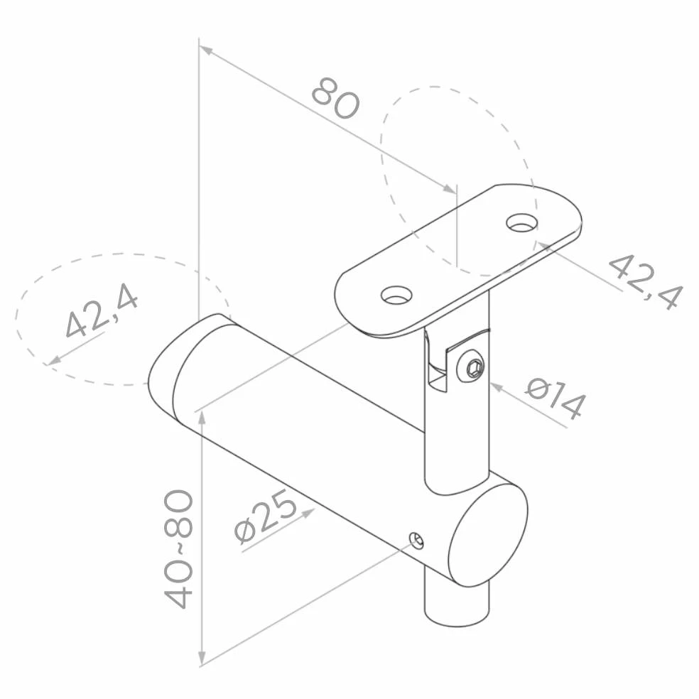 Kloubový spoj umožňuje volné nastavení optimálního úhlu madla zábradlí — nevyžaduje přesné řezání trubek pod úhlem ani použití dodatečných regulačních prvků. Montáž se omezuje na nasazení na sloupek Ø 42,4 mm a dotažení imbusového šroubu, což zkracuje čas práce na objektu.