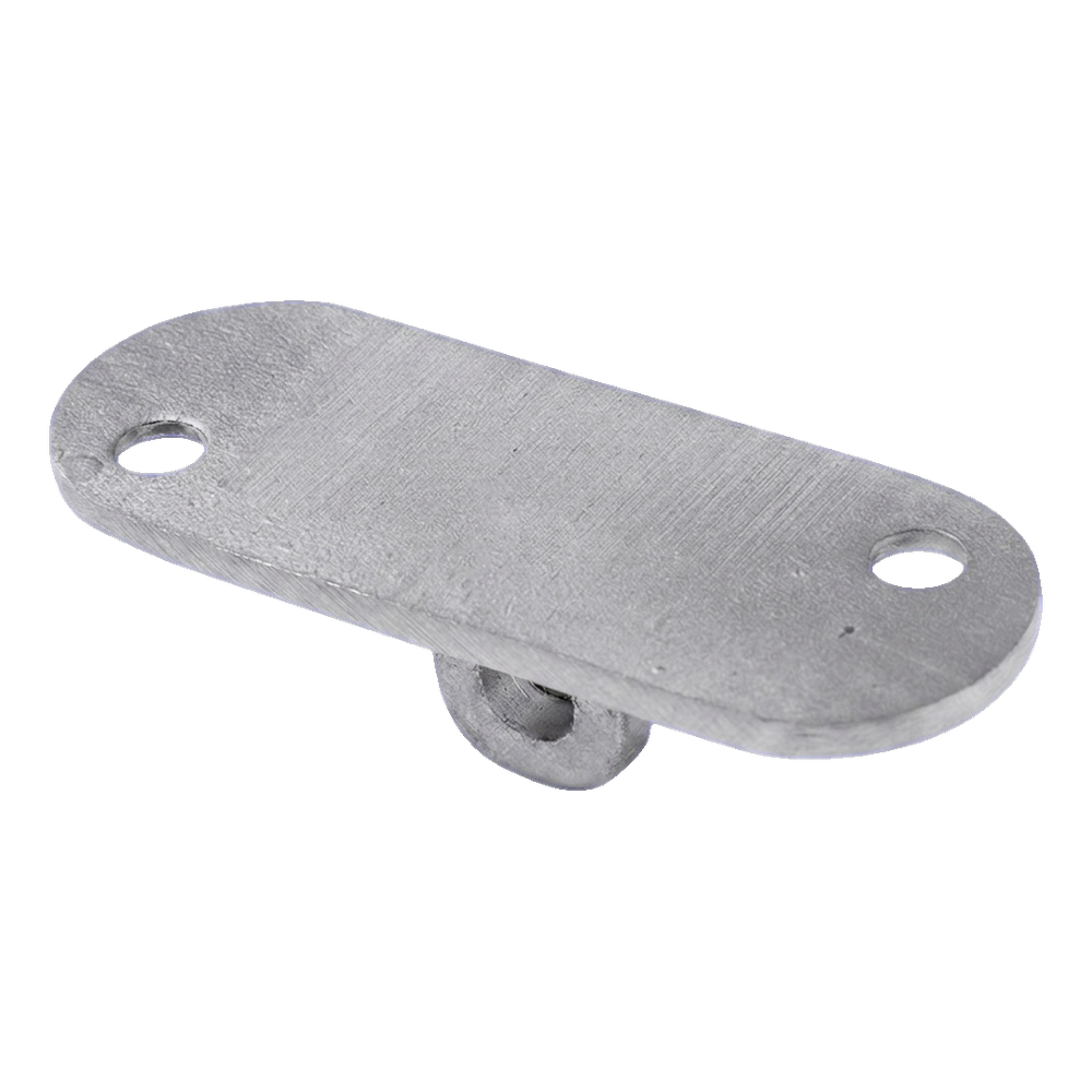 Destička má dva montážní otvory v ploché horní destičce a dolní kloubový úchyt, který se spojuje s elementem sloupku nebo jiným komponentem zábradlového systému. Kompaktní rozměry (64×24×4 mm) a nízká hmotnost (0,03 kg) zajišťují, že element nezatěžuje konstrukci a je snadný pro skladování i transport. Saténová povrchová úprava harmonicky spolupracuje s ostatními elementy plochého systému z nerezové oceli.