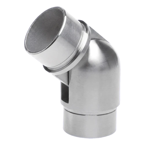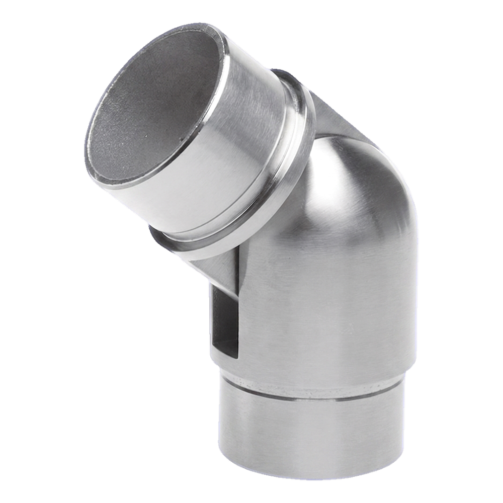Kloubové koleno pro schodišťovou trubku o průměru 42,4 mm a tloušťce stěny 2 mm, s regulací úhlu v rozsahu 90°–180°. Spojka určená pro stavbu zábradlí z nerezové oceli — umožňuje plynulou změnu směru madla na schodech, rampách a podestách, čímž eliminuje nutnost používání mnoha variant kolen s pevným úhlem.