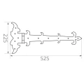 Postal – ozdobný pásový pant levý ocelový 525 × 225 mm