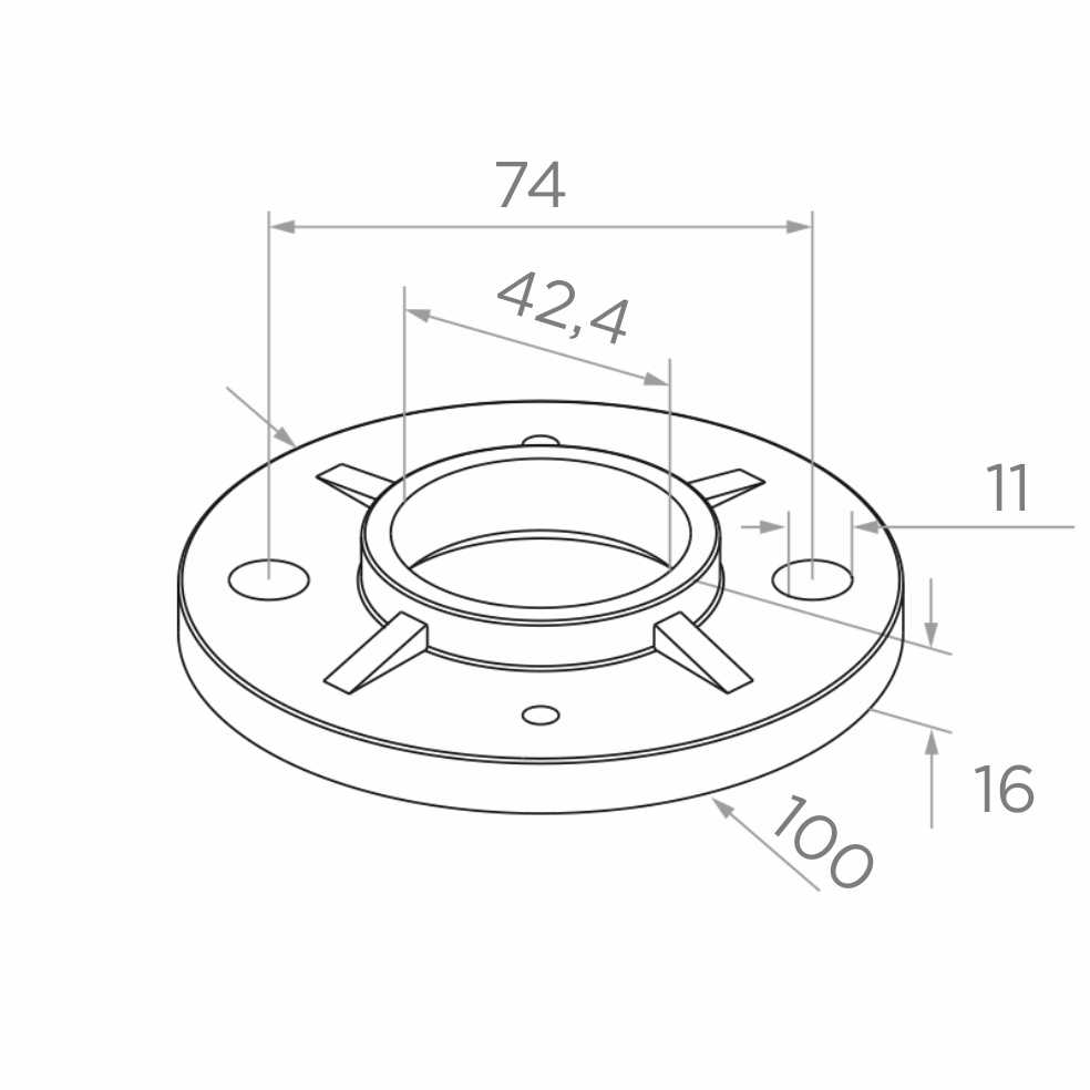 Přírubová montážní základna pro zábradlí ⌀42,4 mm – ocelová s otvory