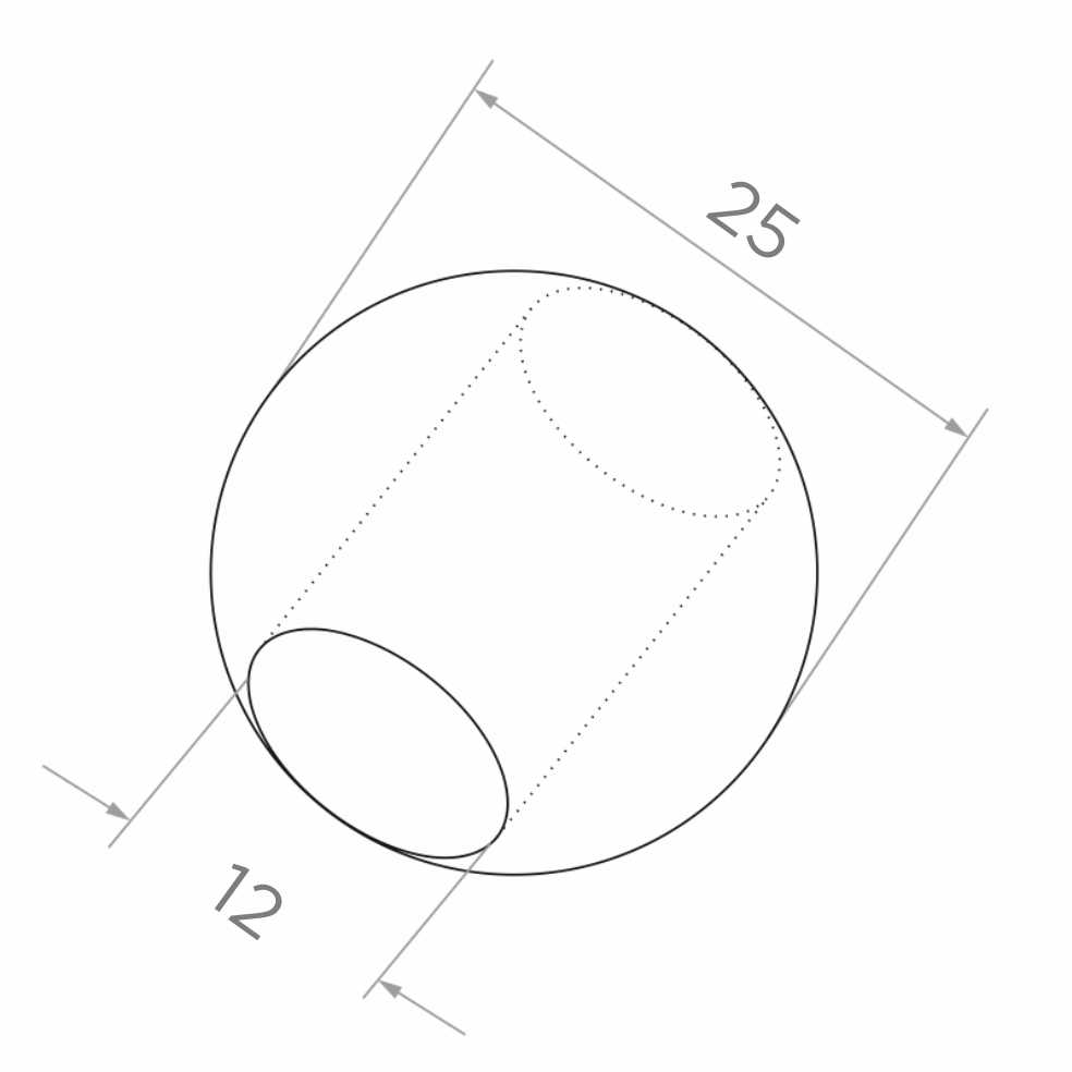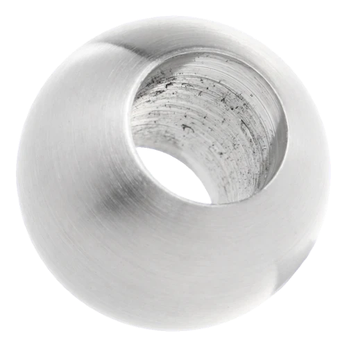 Průchodná koule fi 25/12 mm z nerezové oceli AISI 304 v saténové úpravě — univerzální dekorativně-spojovací prvek pro systémy zábradlí a oplocení z nerezové oceli. Koule je určena k montáži na tyče o průměru 12 mm, kterými prochází naskvoz, vytvářejíc estetické spojení nebo ozdobné zakončení.