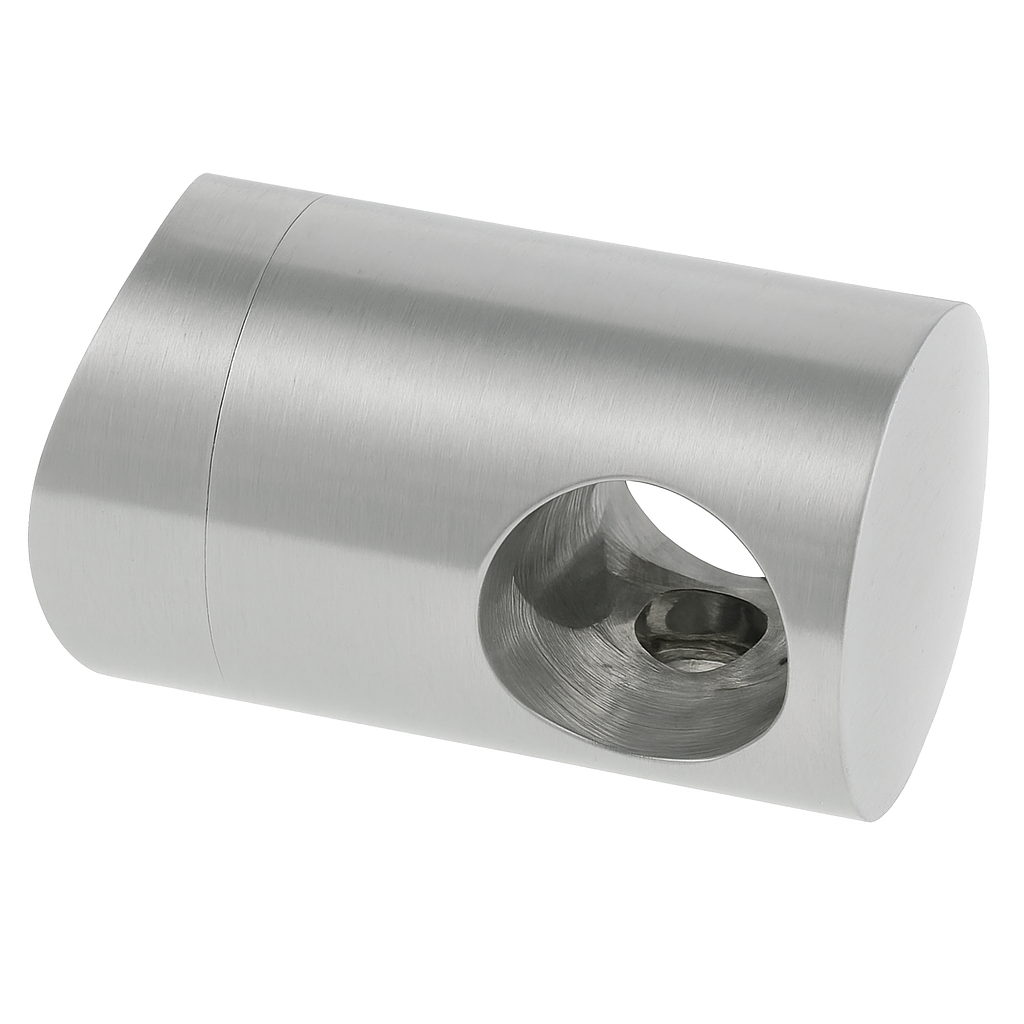 Průchozí držák určený k montáži tyčí o průměru 12 mm na nosnou trubku ø 42,4 mm. Prvek spojuje výplň zábradlí se sloupkem, čímž dodává konstrukci tuhost a jednotný, estetický vzhled. Vyroben z nerezové oceli AISI 304 v saténovém provedení, což zajišťuje vysokou odolnost proti korozi a elegantní, matný charakter povrchu.