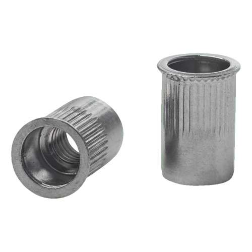 Průchozí nýtovací matice M6 A2 AISI 304 – kuželový přírubu redukovaný, drážkovaný