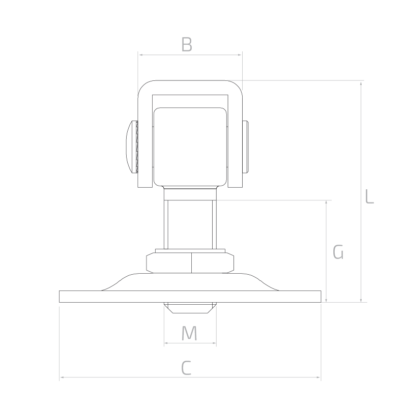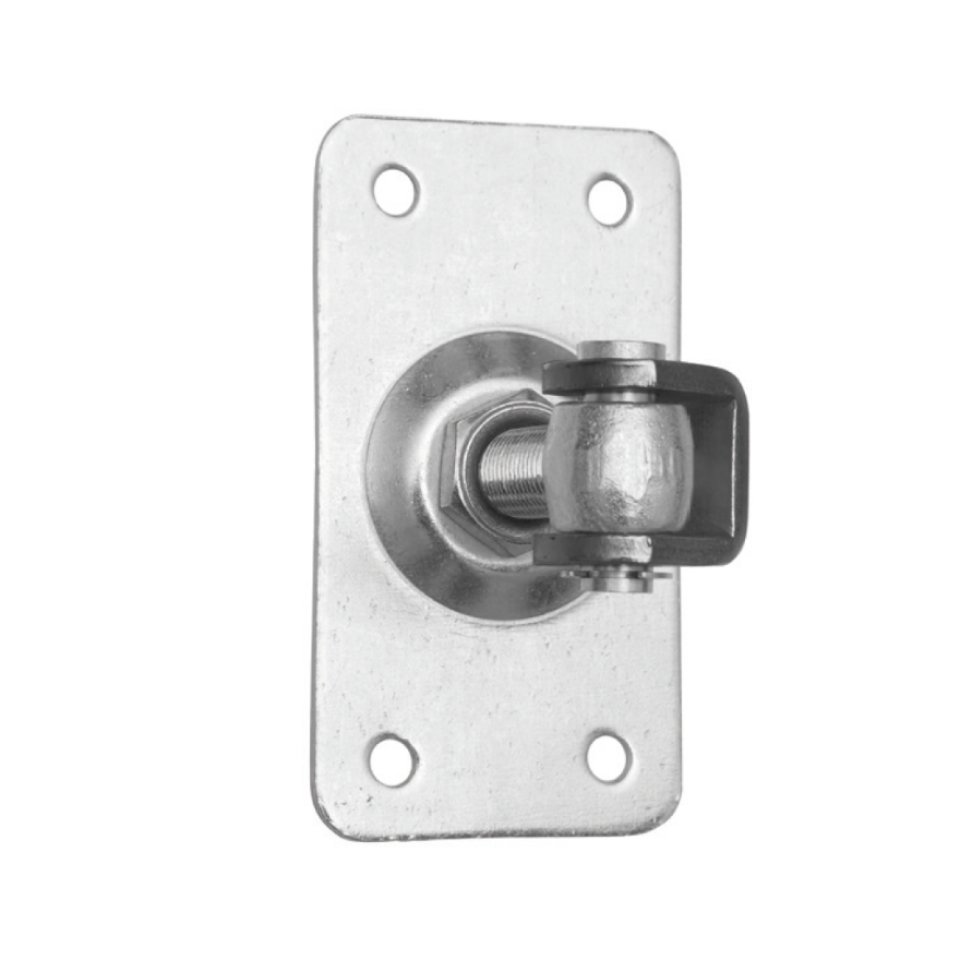 Ocelový regulovatelný závěs se šroubem M20 a obdélníkovým štítkem 160×85 mm — určený pro montáž křídlových vrat a branek. Konstrukce s maticovou regulací umožňuje precizní nastavení křídla jak při instalaci, tak během provozu, kdy změna teploty nebo zatížení způsobuje napětí v konstrukci.