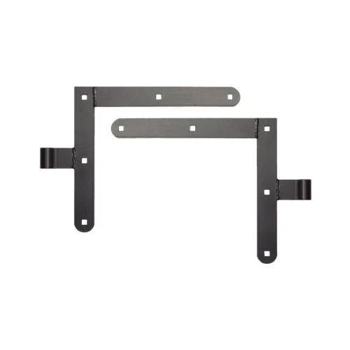 Komplet čtyř rohových pantů určených pro montáž velkých dveří, vrátek a bran — zejména v hospodářských budovách a oplocovacích objektech. Sada obsahuje 4 panty na dvě křídla, což umožňuje realizovat montáž jednou objednávkou, bez nutnosti kompletovat prvky samostatně.