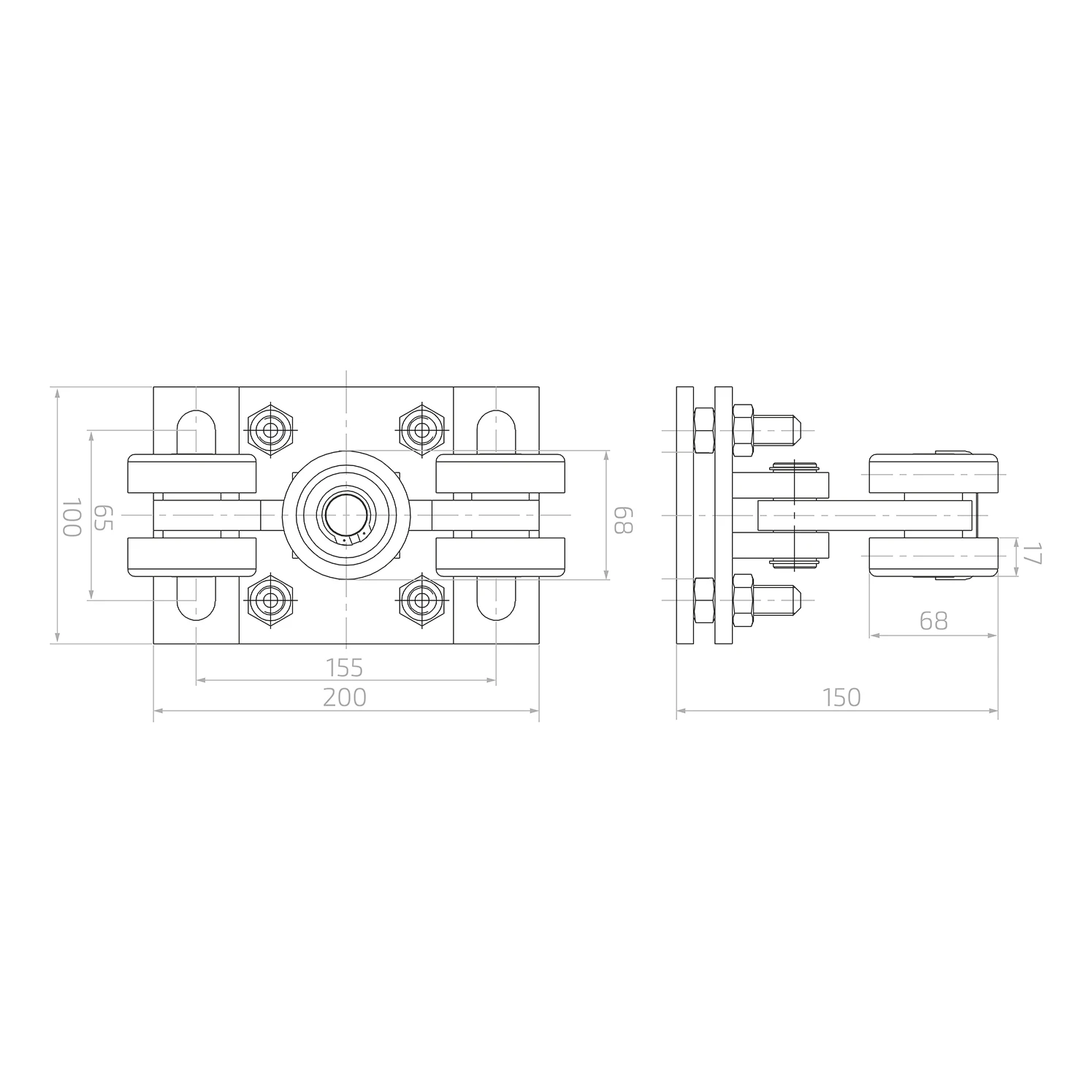 - Rozteč montážních otvorů: 155 × 65 mm