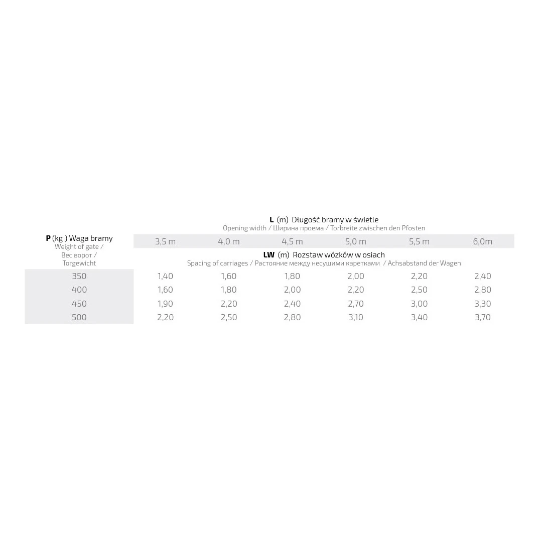 Pojezdový vozík je vybaven kyvným spojením se základnou pomocí čepu, díky čemuž se automaticky přizpůsobuje kolejnici posuvné brány. Výšková regulace umožňuje přesné nastavení brány během montáže.