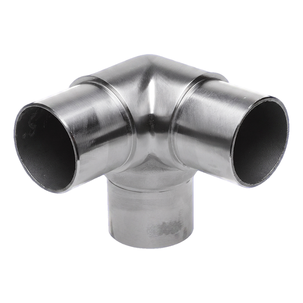Spojka trojcestný rohový pro zábradlí – trubka 42,4x2 mm, nerezová ocel AISI 304, satén