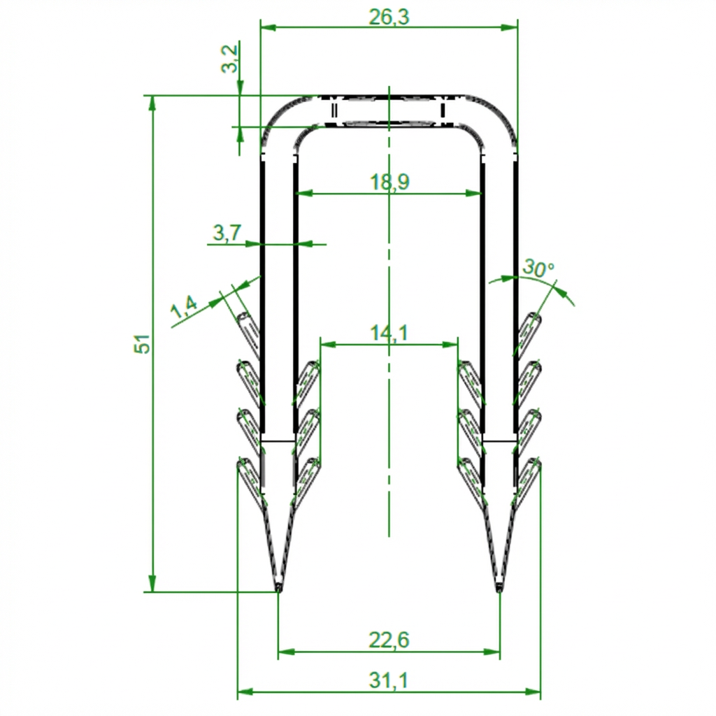 - Pevné upevnění: kotevní zoubky zabraňují vysunutí z izolace