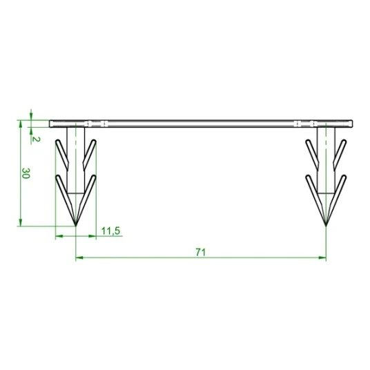 Použití – spony jsou určeny pro upevnění topných trubek v termoformovaných (systémových) rohožích. Díky rozteči 71 mm se výborně hodí pro běžné průměry trubek používaných v podlahovém vytápění.