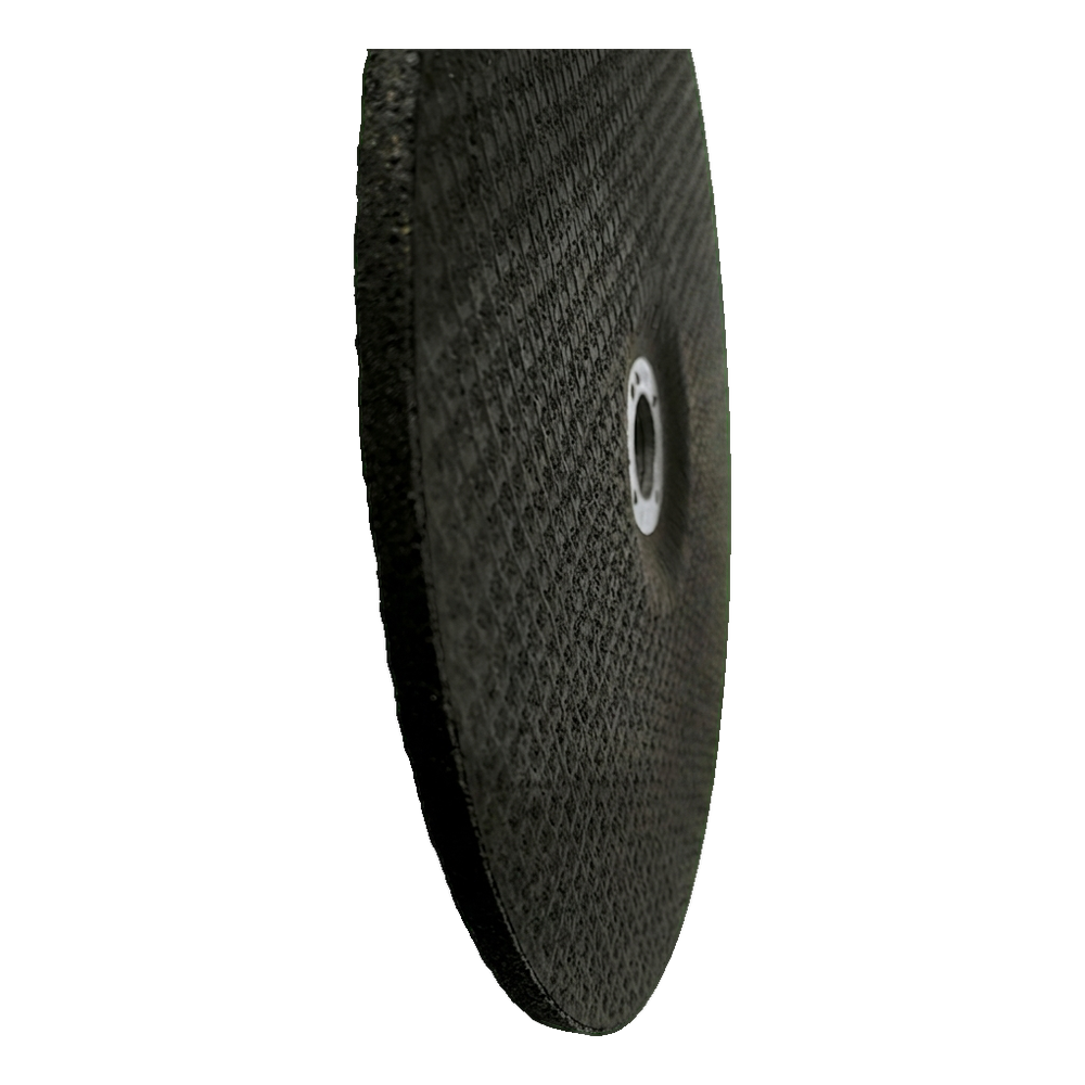 Kotouč má vydutý střední profil (typ 27), díky čemuž se pracovní plocha nesráží s upínací maticí brusky. Síťka ze skelných vláken viditelná ze zadní strany posiluje brusnou strukturu a chrání před rozpadem kotouče při pracovních otáčkách.