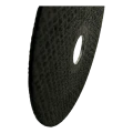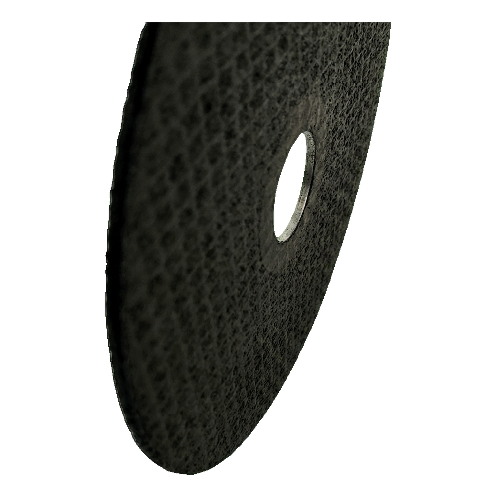Kotouč má zesílení z vláknité síťoviny viditelné na zadní straně, což brání rozpadu kotouče při vysokých otáčkách a zajišťuje bezpečné používání i při intenzivním bočním zatížení. Pojivo ze syntetických pryskyřic zajišťuje odolnost vůči vysoké teplotě generované během řezání, a korundová brusná zrna se samovolně odhalují s mírou opotřebení — udržující konstantní agresivnost řezání po celou dobu provozu.