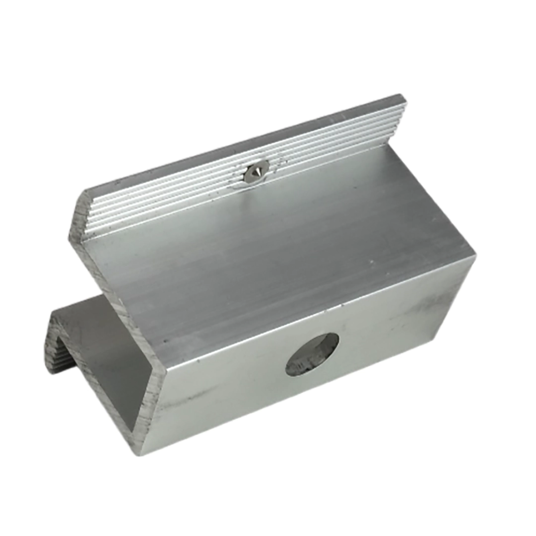 Středová Svorka z Hliníku 6060, 25 mm, otvor pro šroub M8 pro fotovoltaické moduly je inovativní řešení pro podporu instalací ochrany před bleskem a přepětím, užitečné zejména ve fotovoltaických systémech.