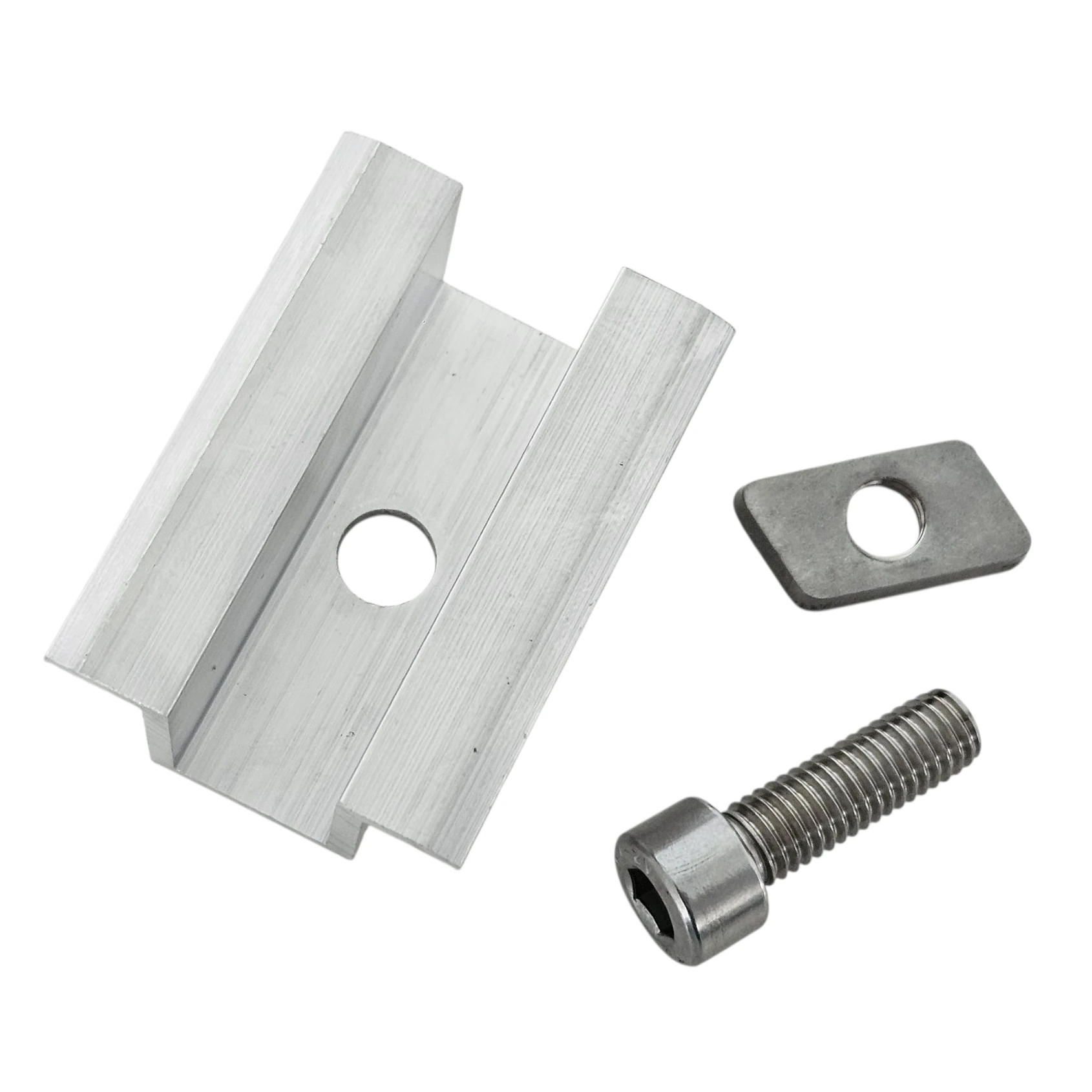 Centrální přítlačný držák H25 L50 se šroubem M8x20 a vložkou z hliníku 6060, pro montáž fotovoltaických modulů 30 mm se šrouby DIN 912.