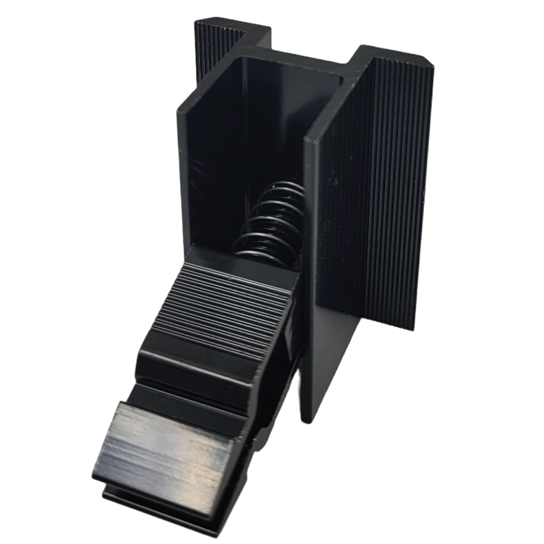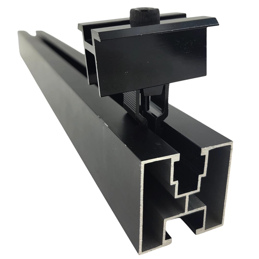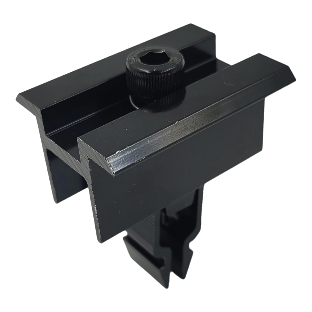 Středová svorka z Hliníku 6060 Černé lakování - Click-fit s Maticí a Šroubem, L50 (typ 2) pro upevnění fotovoltaických modulů.
