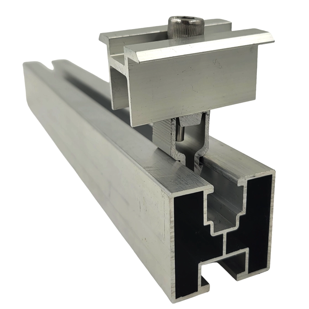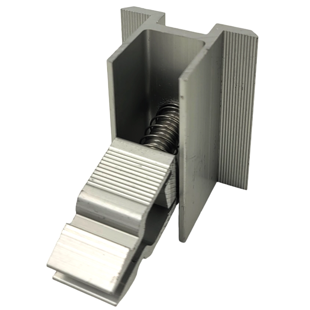 Středová svorka se zacvaknutím a šroubem je nedílnou součástí instalace solárního modulu. Středová svorka je montážní prvek pro fotovoltaické instalace a slouží k upevnění fotovoltaického panelu na hliníkový konstrukční profil. Používá se k montáži fotovoltaických panelů na ploché i šikmé střechy.