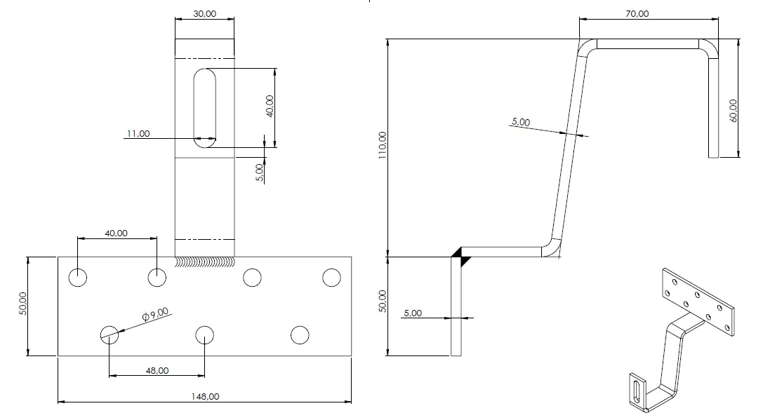 Střešní hák T svařovaný 110mm TS vyrobený z nerezové oceli A2 (1.4301) je robustní montážní prvek používaný ve fotovoltaických instalacích na střechách pokrytých taškami.