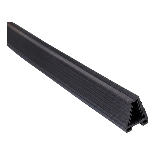 Profil s trojúhelníkovým průřezem s vnitřními komorami zajišťuje rovnoměrný docisk po celé délce madla a tlumí vibrace a napětí skleněné tabule. Pružný materiál kompenzuje tolerance tloušťky skla v rozmezí 1,5 mm, takže jedna velikost těsnění obslouží různé tabule — pohodlné řešení při objednávkách s více variantami zasklení.