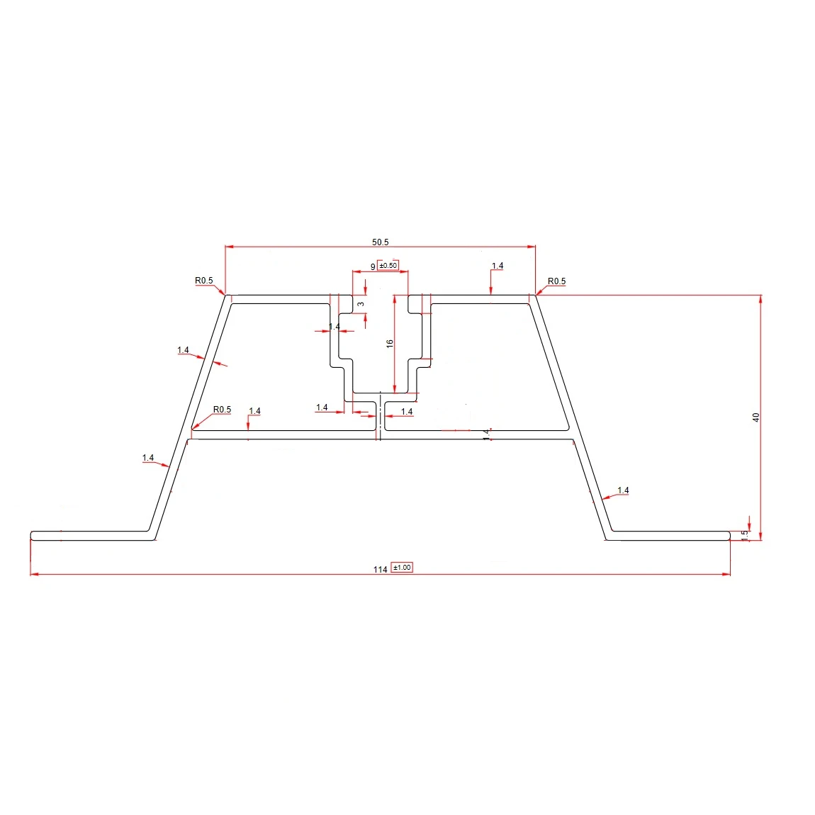 Hliníkový trapézový můstkový profil 6060 pro plechové střechy, 600x40 mm, pro fotovoltaické moduly.