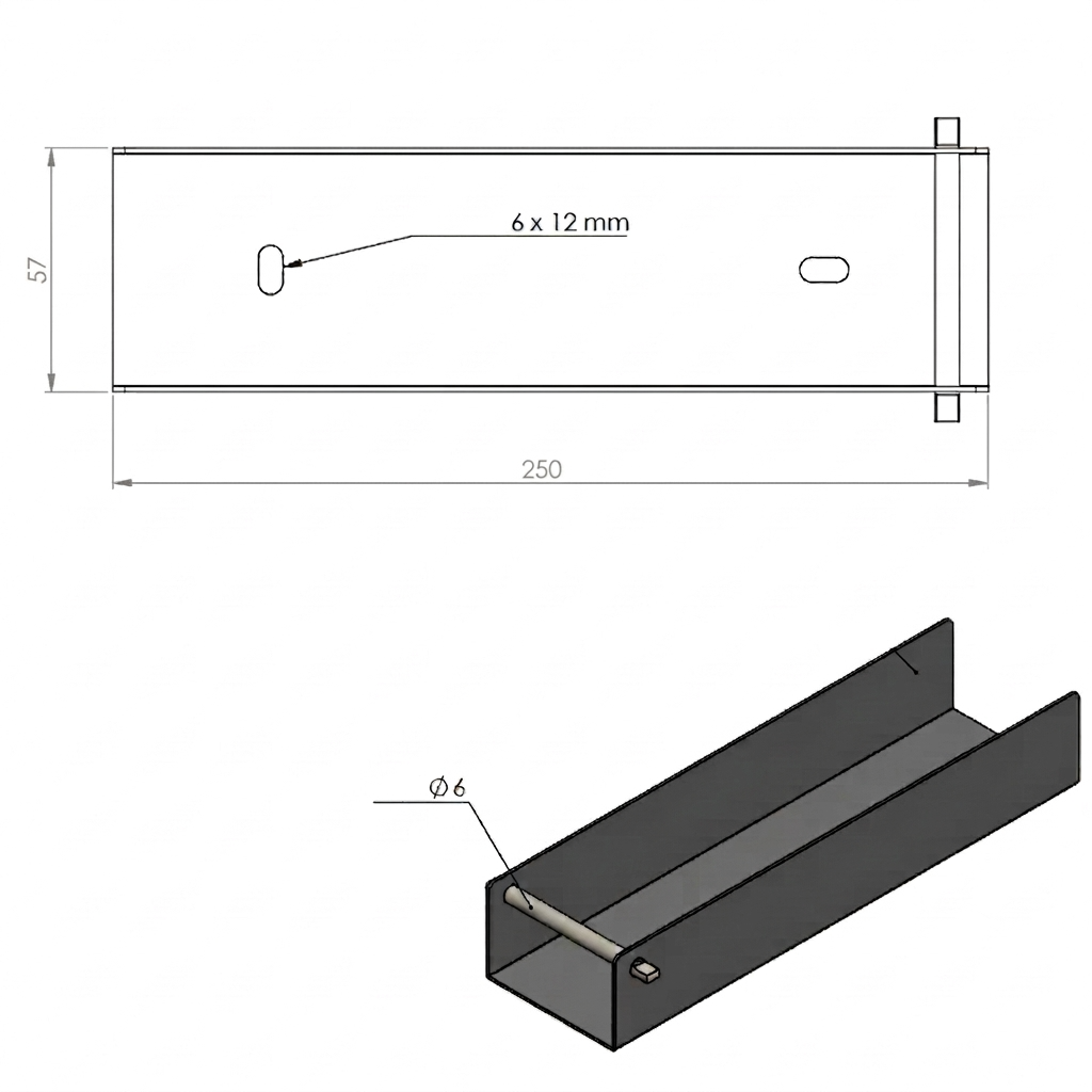 - Montážní otvory: 2 ks — fazole 6 × 12 mm